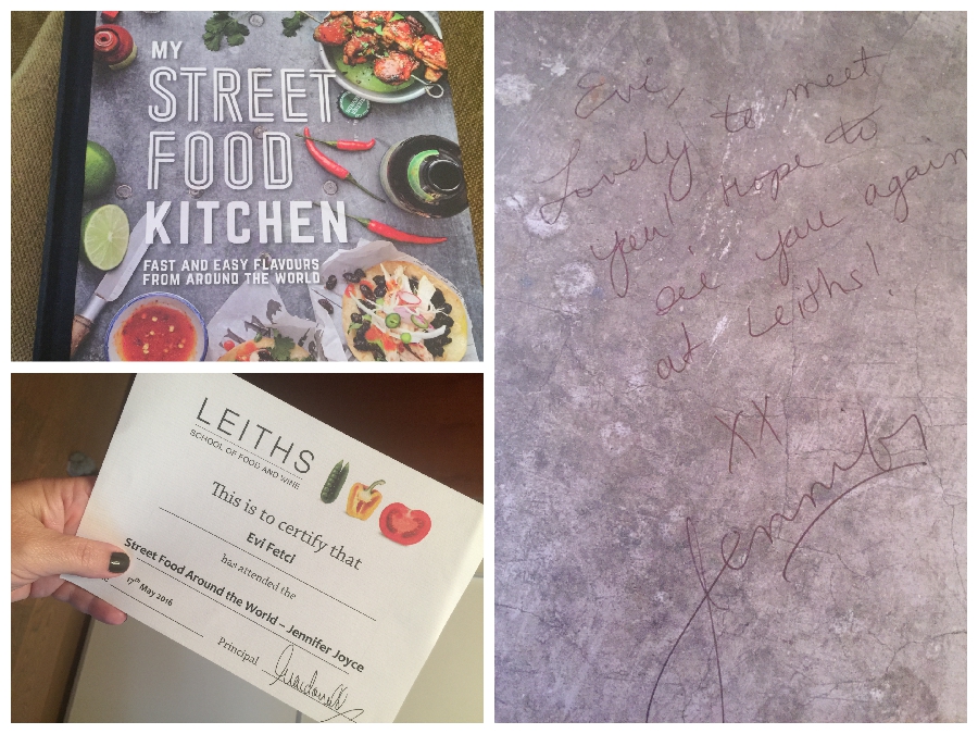 Η όλη διαδικασία, από την επιλογή του μενού και την υλοποίηση του μέχρι το table setting και το wine pairing – το οποίο εννοείται πως αναλαμβάνει πάντα ο Πάνος και ποτέ εγώ- είναι ένας από τους τρόπους με τους οποίους λέω «σ’ αγαπώ» εκεί που πιστεύω και νοιώθω πως αξίζει. Και παρόλο που δυστυχώς οι επιλογές μου δεν υπήρξαν πάντα σωστές, την πόρτα του σπιτιού μας περνάνε μόνο οι άνθρωποι που θεωρώ εντελώς δικούς μας. Οικογένεια της καρδιάς. Τις υπόλοιπες υποχρεώσεις μας τις βγάζουμε σε εστιατόρια και bars. Η μαγειρική μου πορεία βέβαια δεν υπήρξε πάντα στρωμένη με ροδοπέταλα, ούτε πάντα επιτυχημένη. Μετράω δεκάδες πανωλεθρίες, οι περισσότερες από τις οποίες έγιναν παρουσία των καλεσμένων μου, όπως εκείνο το άθλιο κρέας κατσαρόλας που ετοίμασα κάποτε για παρέα γευσιγωστική και το οποίο όντας γεμιστό με διάφορα τυριά άρχισε να αδειάζει μέσα στην κατσαρόλα καταλήγοντας να μοιάζει περισσότερο με πολτό παρά με φαγώσιμο. Ή το καημένο το Ιταλικό παστίτσιο που την πρώτη φορά που το μαγείρεψα – μια που την συνταγή μου την είχε δώσει αιώνες πριν η μητέρα ενός παλιού μου αγαπημένου αλλά εγώ η ακαμάτρα κόρη δεν είχα μπει στην διαδικασία να το φτιάξω ποτέ- ξέχασα πως έπρεπε να μείνει τουλάχιστον μια ώρα για να σταθεί πριν το κόψω με αποτέλεσμα να το σερβίρω αμέσως μόλις βγήκε από τον φούρνο και να καταλήξουμε να το φάμε με το κουτάλι, σαν σούπα. Όμως με τα πολλά παθήματα ήρθαν και τα μαθήματα, και δεν εννοώ μόνο τα μεταφορικά αλλά και τα κυριολεκτικά. Από τα courses του Χριστόφορου Πέσκια και του Matsuhisa εδώ στην Αθήνα μέχρι το Waitrose και το Cookery School στο Λονδίνο δεν χάνω ευκαιρία να εμπλουτίσω τις γνώσεις μου και να πειραματιστώ με καινούριες συνταγές ή κουζίνες. Και έχει τύχει να κυνηγάω μαθήματα πολύ καιρό, μια που ειδικά στο Λονδίνο οι θέσεις για τα καλά κλείνουν αμέσως, ή δεν είμαι εκεί όταν ανοίγουν οι λίστες συμμετοχής. Ένα από αυτά τα μαθήματα ήταν και το Street Food around the World της Jenifer Joyce στην Leith’s School of Food and Wine. Λατρεύω αυτό το είδος φαγητού, και τα πιάτα που περιλαμβάνει το συγκεκριμένο course είναι πραγματικά iconic.